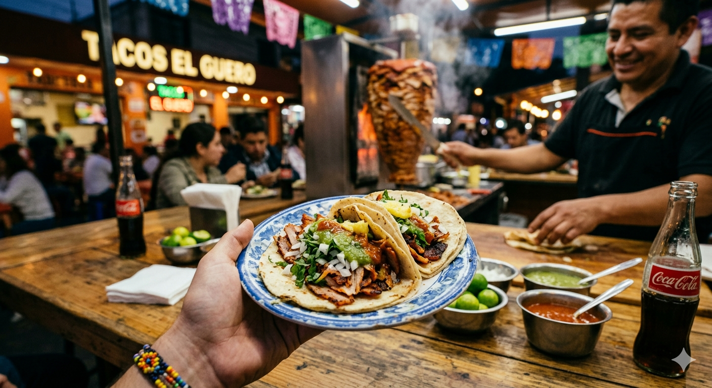 Vergeet alles wat je denkt te weten over Tex-Mex; de echte smaken van Mexico vind je bij de kleurrijke stalletjes op de lokale pleinen. Van de perfecte Taco al Pastor tot verse tortilla’s die voor je neus worden bereid. We gidsen je langs de beste culinaire plekken, vertellen je precies wat je moet bestellen en geven je praktische tips om de lokale keuken te verkennen als een echte insider.